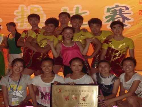 健美操代表队成员由练田径、武术、游泳等非专业运动员组成,他们努力克服自身不足,勤学苦练、顽强拼搏。训练期间,全体教练员、运动员更是牺牲了寒暑假休息时间,一心扑在训练上。炎炎夏日,我校体育馆内燥热无风、环境艰苦,他们发扬不怕吃苦、团结奋进、顽强拼搏的精神,最终取得了优异成绩,为我校争得荣誉。