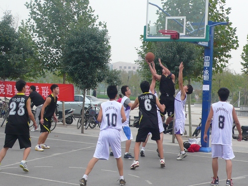 比赛开始前,杨刚就比赛规则及比赛目的对参赛队员进行讲解。他说,队员要尊重裁判,遵守规则,服从裁判的裁决,同时也要尊重比赛对手。随后,比赛本着“友谊第一,比赛第二”的原则在四个篮球场地同时展开。