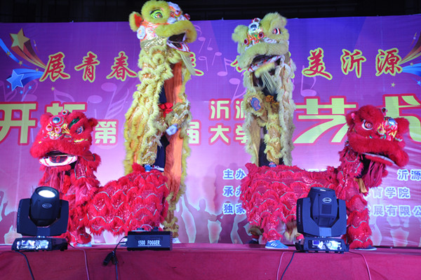 伴随着铿锵有力的鼓声,由我院武术协会带来的舞狮表演《醒狮报秋送真情》呈现在观众眼前。