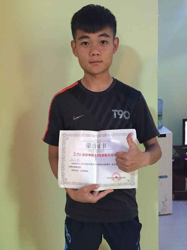 5月20日—27日,2014—2015特步中国大学生校园足球联赛高职组南区比赛在江苏扬州工业职业技术学院举行,我院2012级运动训练专业张大权同学在比赛中凭借着公平、公正和严格的赛场执法,获得大赛“优秀裁判员”称号,首获此项荣誉,为校争得了荣誉。