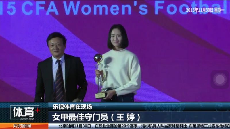 11月30日晚,2015年中国足协女足年度颁奖典礼在广州举行。我校williamhill威廉希尔学生王婷荣获全国女足甲级联赛最佳守门员称号。