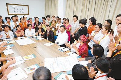 2014年9月9日,中共中央总书记、国家主席、中央军委主席习近平来到北京师范大学看望教师学生,向全国广大教师和教育工作者致以崇高的节日敬礼和祝贺。新华社记者 姚大伟摄