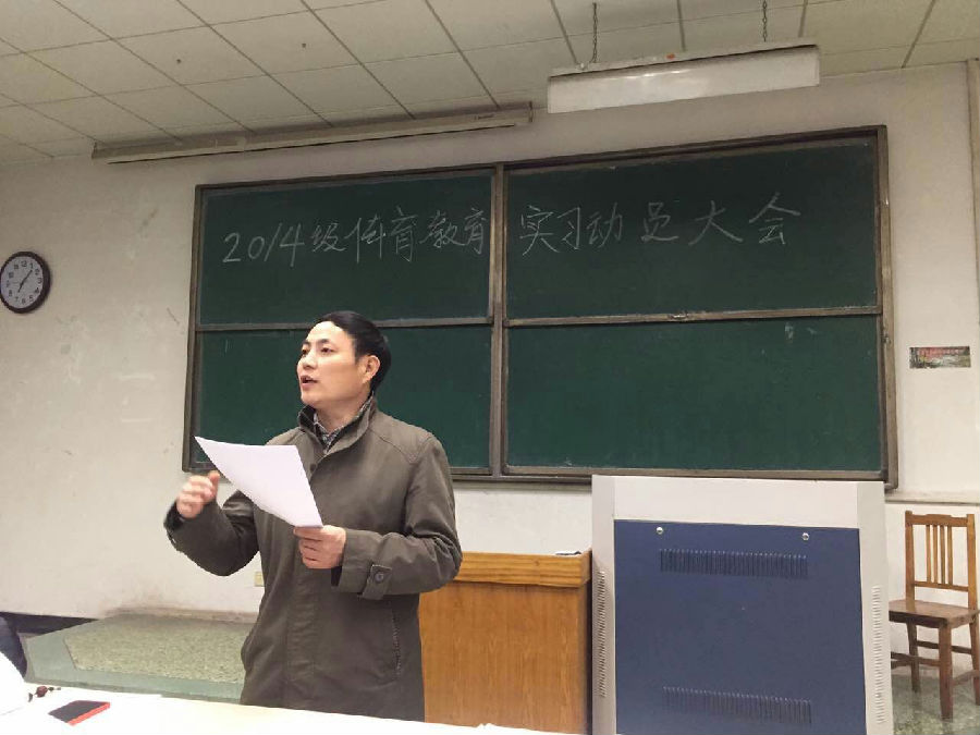 为确保体育教育专业教育实习工作的顺利开展,williamhill威廉希尔于2月27日晚上19:00在4号教学楼101教室召开了2014级体育教育专业教育实习动员大会。院长助理董杰老师、教学科长杨刚老师、实习指导教师和2014级体育教育专业全体学生参加会议。