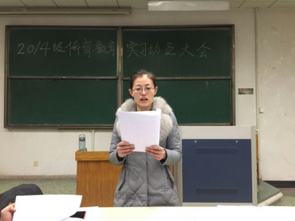 实习动员大会由学院教学科科长杨刚老师主持,首先他就教育实习的重要意义、作用做了详细讲解。他讲到教育实习不仅是人才培养的重要环节,也是检验学生教学训练业务能力的重要手段,通过实习学生可以明确自己在学习中的优势与不足,进一步完善自己,提高专业综合素质。