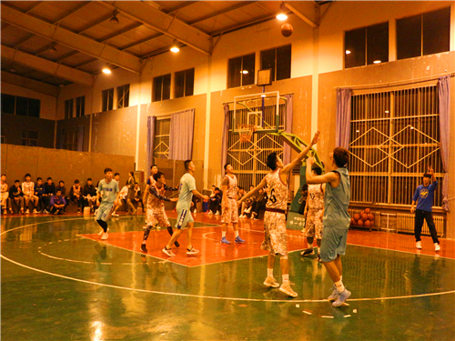 比赛伊始,首先是2014级体教队对阵2017级体教队。队员迅速投入比赛,个个雄姿英发。赛场上互不相让,抢球、传球、投球,动作行云流水、干脆潇洒。场面火爆,异常激烈。最终2014级体教以45:40的比分取胜。