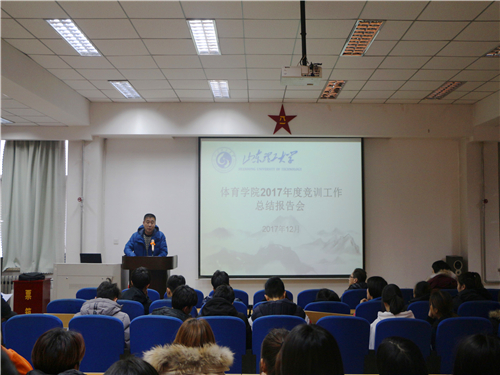 12月28日下午,我院在2号教学楼4楼会议室召开2017年度竞训工作报告会。学院院长刘卫,党总支副书记宋伟,院长助理庄洪业及各训练队教练员和队员出席了此次总结报告会。