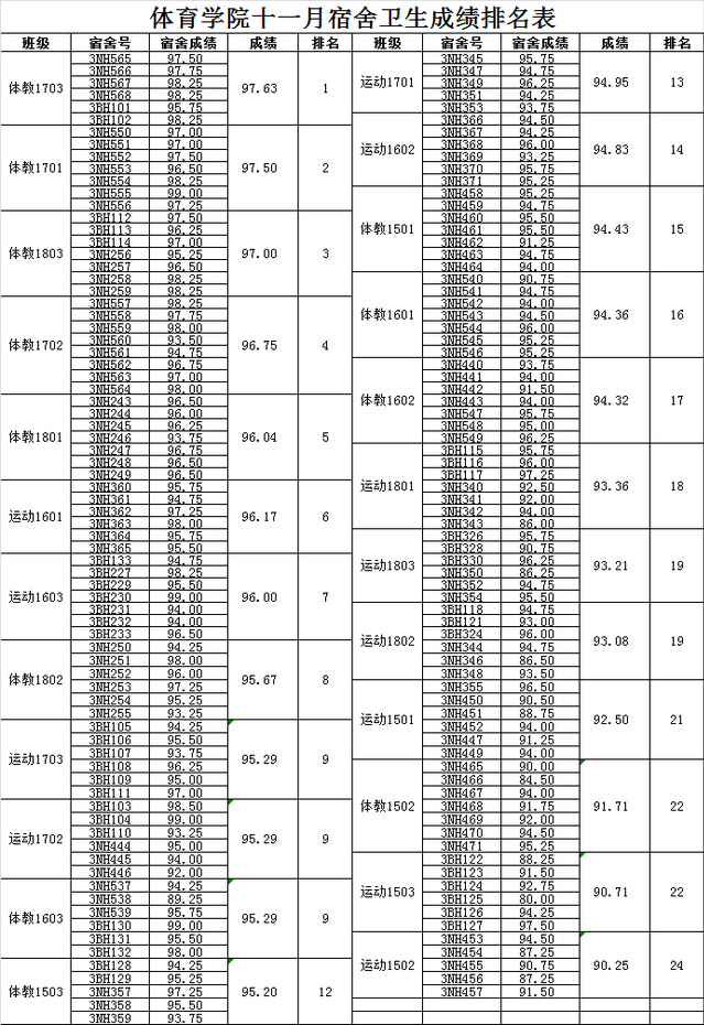 我院11月份优秀班级名单公布如下:体教1703、体教1701、体教1803、体教1702、体教1801。