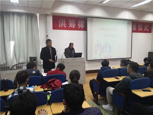 2019年1月14日下午,我院在学院四楼会议室举行2016级体育教育专业实习支教培训周启动仪式。此次会议由副院长张成宝主持,教学科研办公室主任杨刚、学生工作办公室主任郝鹏、辅导员邱先慧、指导教师和2016级体育教育专业全体学生参加。
