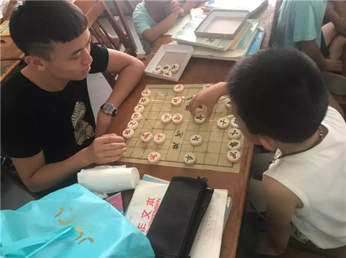 同时,为弘扬中国传统艺术,实践团成员与孩子们一起进行下象棋活动,象棋既有利于促进孩子们智力发展的,也培养孩子勇于进取,勇于拼搏,认真思考,具有全局观念。