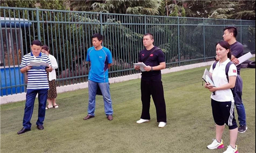 第二组:公共体育组。由副院长张成宝带领公共体育教学一部主任郭涛、教工第一党支部书记刘艳华等老师在第二体育场、第四体育场观摩公共体育课。