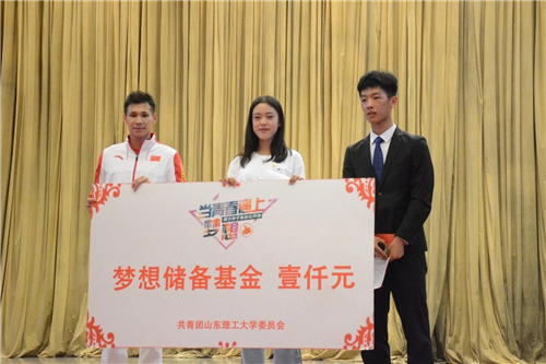 随后,为鼓励大学生勇敢追逐梦想,现场邀请了10名有梦想的2019级新生登上舞台,分享自己的梦想:有同学想成为特种兵,有同学想成为光荣的人民教师,有同学想考研深造,有同学以张成龙为榜样,想站在最高的领奖台上……张成龙一一进行点评,引导同学们前行的方向并总结:“青年要树立远大理想,对自己严格要求,超越自我,将一点一点的小目标积累起来,滴水穿石,最后一览众山小。”张成龙将签字留念作为对同学们梦想的见证,并现场抽取到一名幸运同学,亲自为其颁发校团委设置的1000元梦想储备基金,助力梦想实现。活动在热烈的掌声中落下帷幕。