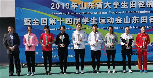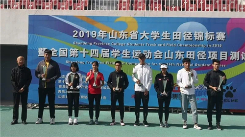 10月10日至15日,在青岛国信体育中心举行的山东省大学生田径锦标赛中,我校田径代表队不负众望,摘得四金、九银、十铜,获得女子丙组团体第一名、男子丙组团体第四名以及丙组团体总分第一名的好成绩,蝉联该项赛事五连冠。此次比赛,我校派出盛红庆、李继伟、高春爱3位教练员带领24名队员参赛。