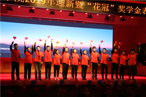 为迎接2019级新生,11月14日晚,我院于三号教学楼报告厅举我院2019年迎新暨“花冠奖学金”颁奖晚会。校党委常委副书记胡兴禹,花冠集团公司副总经理刘培庚,校团委书记魏法汇,花冠集团公司综合服务部部长柴龙莅临晚会现场,我院院长刘卫,党总支副书记宋伟,副院长张成宝等领导老师及我院部分学生参加此次迎新晚会。