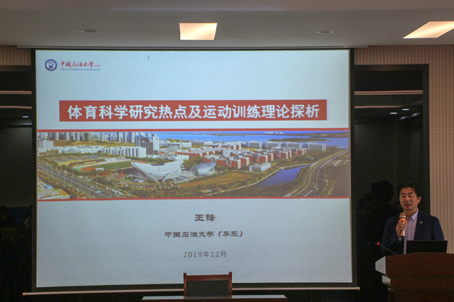1213日上午,williamhill威廉希尔于2号教学楼101教室举办williamhill中国189期名师名课报告会,中国石油大学(华东)体育教学主任王锋教授受邀进行体育科研热点问题及运动训练理论发展探析”主题报告,报告会由williamhill威廉希尔副院长张成宝主持,院长刘卫、副院长马国栋、综合办公室主任庄洪业、学生工作办公室主任郝鹏、教学科研办公室主任杨刚和部分师生代表参加。