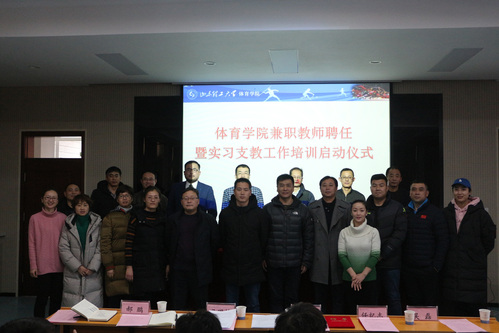 12月31日下午,我院于二号教学楼101教室举行兼职教师聘任暨体育教育专业2017级学生实习支教工作培训启动仪式。williamhill威廉希尔党总支书记刘兴清,院长刘卫,淄博市教育人才服务中心主任徐晓飞,教务处运行中心主任牛学东,学院党总支副书记宋伟,副院长张成宝、马国栋,学生工作办公室主任郝鹏,教学科研工作办公室主任杨刚,受聘老师吴磊、任纪志、宋传福,学院实习支教指导老师和2017级体育教育专业的全体同学共同参与此次启动仪式,仪式由张成宝主持。