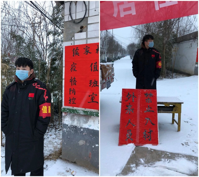 在疫情来临之际,作为新时代的新青年,我院运动训练1601班田爱琛与村领导班子一同奋战在前线,积极响应村两委的号召,捐款、主动要求昼夜站岗。“只争朝夕,不负韶华”是他对习近平总书记对青年人期盼的最好诠释。