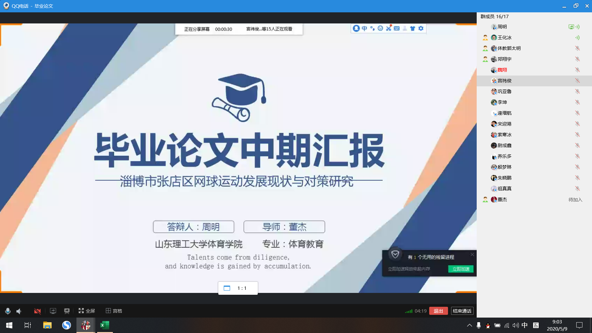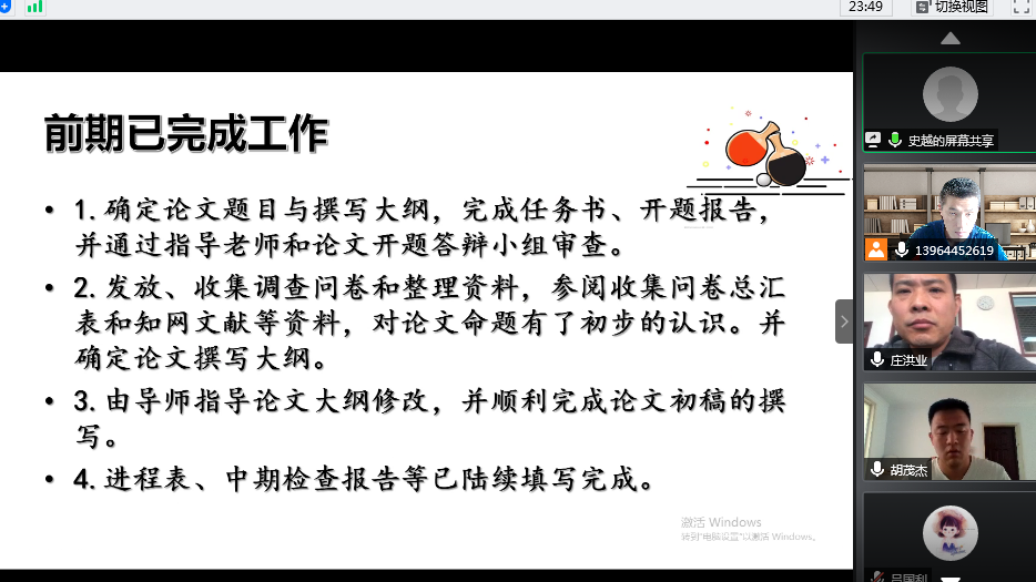 毕业论文是本科人才培养的重要教学环节。疫情期间,为了全面了解学生毕业论文工作进展情况,提高毕业论文质量,保证毕业论文工作的顺利进行,我院于5月8日——5月13日举行了2020届毕业论文线上中期汇报答辩工作。此次线上中期汇报答辩主要通过腾讯会议和QQ群视频电话+屏幕分享方式进行,答辩评委由毕业论文指导教师担任,2020届全体毕业生参加汇报。