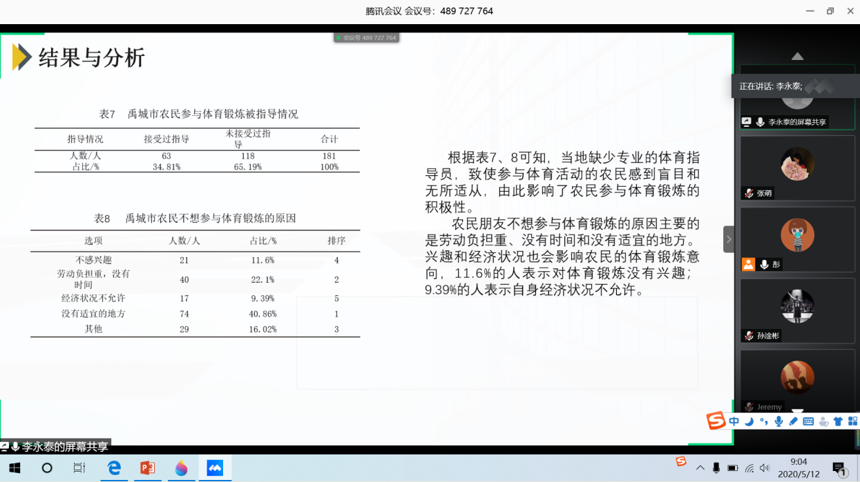 会上,学生采用PPT形式对前期已完成的论文工作、论文初稿(研究方法、研究结果与分析、结论等)以及下一步工作计划等方面进行了汇报,评委们认真听取了学生汇报,并就论文存在的问题进行了提问和指导。