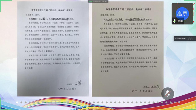 最后,全体学生会成员签订承诺书,高勇对接下来的学生干部培训事宜做了介绍。