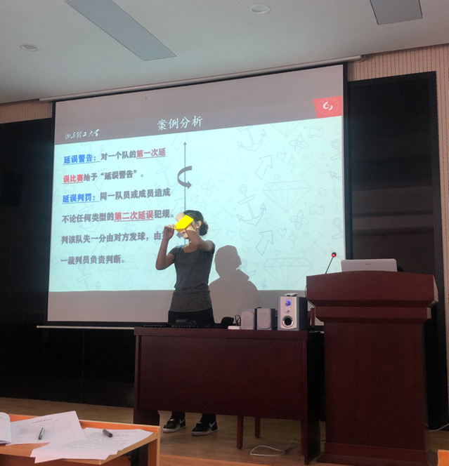孙粼婧教师通过挖掘排球课程教学思政元素,以中国女排精神为主线,对排球运动发展过程中新增加的“自由人”角色,进行了细致讲解,进一步诠释了中国女排精神的热爱国家,敢于拼搏,任劳任怨,永不言败的精神实质。将理论和实际相结合,激发了“学生”学习的兴趣。