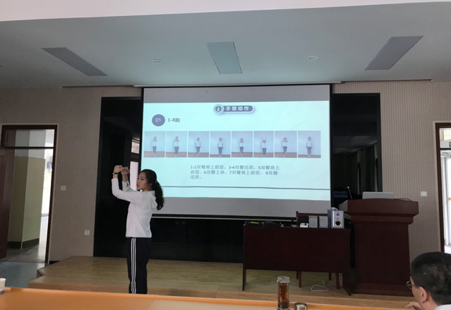 孙毅教师从回顾复习上次课学习内容开始,对第三套大众一级健美操的动作组合进一步学习。带领大家从准备活动到放松活动,对灵活优美的健美操动作进行了讲解,课中精准的示范动作与准确的语言表达,带给“学生”更直观的体验。