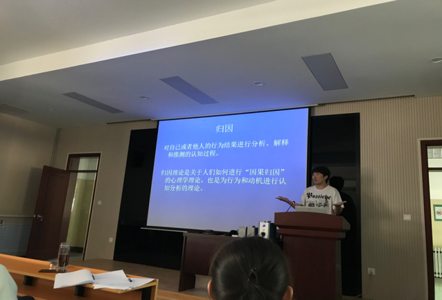 张祯教师以足球世界杯经典案例作为课程切入点,通过对教材内容细致的讲解,对本次课所讲授的“归因理论”进行分析,深入浅出,加强教学互动,“学生”参与课堂的热情高。