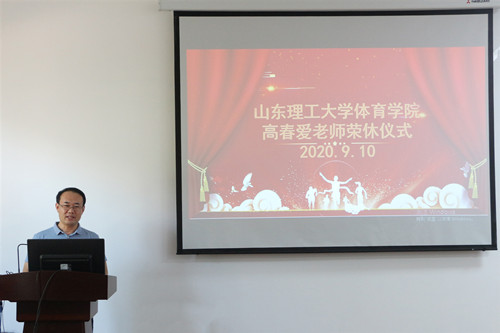 运动训练系主任高博在发言中回忆了和高老师一起工作的情景,对高老师的教学工作生涯进行了肯定,并要求年轻老师将其作为榜样,不断努力,实现自己的职业价值。