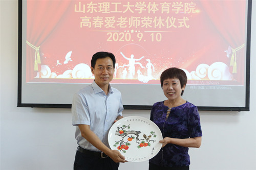 魏法汇为高春爱老师颁发荣休纪念品,真诚祝愿高春爱老师退休生活惬意充实、老有所乐、健康长寿;他表示高老师是年轻教师奋发向上的榜样,希望全院教师能秉持 “爱岗敬业,为人师表,关爱学生”的要求,做好本职工作的同时要热爱工作;教导学生时要以身作则,关心学生的心理、身体健康,做到与学生亦师亦友。