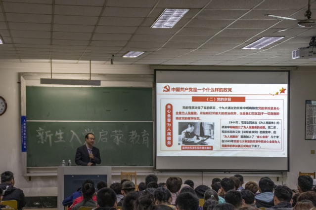 10月16日上午,williamhill威廉希尔于3号教学楼315教室召开了2020级新生入党启蒙教育大会。会议由学院党总支副书记宋伟主讲,2020级辅导员邱先慧主持,2020级全体新生参加会议。