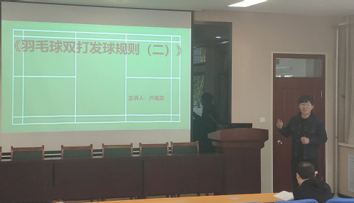 随后,第十八届青年教师讲课比赛参赛教师赵亮和卢海龙进行试讲,赵亮就《增肌饮食计划》进行讲解,主要是从增肌原理、饮食搭配和饮食计划的制订等几个方面进行详细解说。卢海龙以《羽毛球双打发球规则(二)》为主题,生动详细的对发球时的站位和顺序和合理发球进行讲解。紧接着,部分参会教师从教学内容、教学设计、教学方式、教课技巧等方面提出了改进意见和建议。