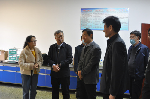 在运动医学实验室,邓书记和学院教师王小迪进行交谈,在交谈中询问有关实验室的建设管理和教学安排等情况。邓书记结合学院汇报和现场检查情况,对学院进一步做好教学训练、群体活动工作提出具体指导意见。