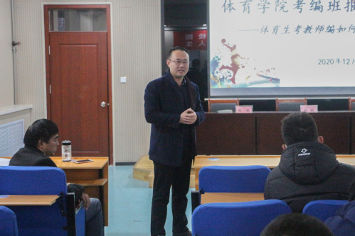 紧接着,程敏以“体育生考教师编如何更容易”为主题进行专题报告会,围绕考编政策、体育专业招考形式以及如何积极备考三个方面内容展开。他提到今年的考编形势严峻,建议同学们吃透书、夯实理论基础,全面提升体育专项技能,并在能力范围内确定合适的目标;并围绕“限不限时间”和“限不限师范类”问题进行了现场讨论。