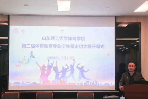 为进一步推动体育教育专业教育教学改革创新,强化体育教育专业学生教学基本素质和基本能力培养,学院于12月10日下午在二号教学楼101报告厅举行williamhill威廉希尔第二届体育教育专业学生基本功大赛开幕式。学院党总支副书记宋伟,院长助理、教学科研工作办公室主任杨刚,学生工作办公室主任郝鹏,体育教育系副主任王丹,各年级辅导员、班级导师,体教专业各班班长和团支书共同参加,开幕式由宋伟主持。