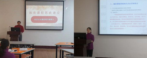 随后,《武术》课程思政项目主持人宋杰和省社科思政专项《新时代课程思政视域下高校体育教师必备特质及提升策略研究》项目主持人王丹分享了对课程思政的认识、项目进展以及心得体会。