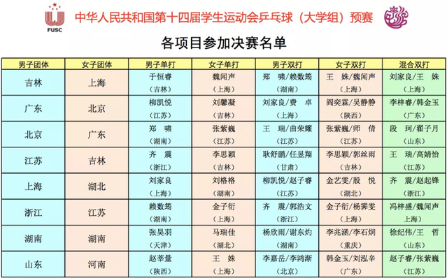 据悉,中华人民共和国第十四届学生运动会乒乓球项目(大学组)决赛将于明年7月在山东青岛举行,相约明年!