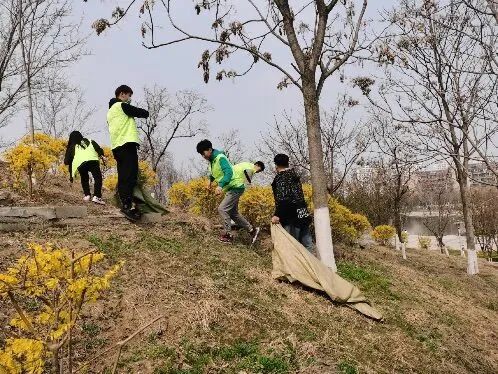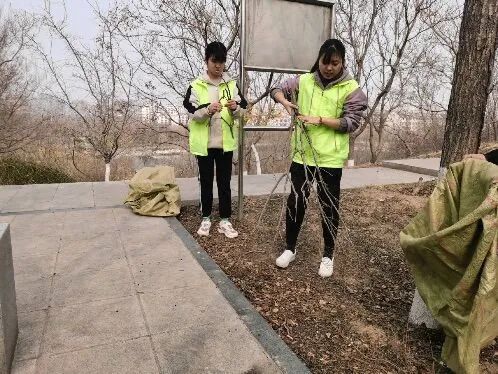 活动中,志愿者们身穿绿色马甲,手拿垃圾袋,环绕稷山进行垃圾清扫。志愿者们对稷山里的道路进行了清扫,将草丛中的树叶、枯枝、碎石子、白色方便袋等垃圾进行“地毯式”打扫,用实际行动贡献自己的力量。