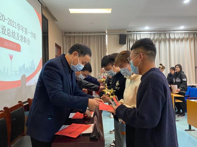 紧接着,与会领导为获得“学风建设先进班级”、“学风建设优良宿舍”、“学风建设先进个人”、“学习进步奖”荣誉的学生代表颁发荣誉证书及奖金。
