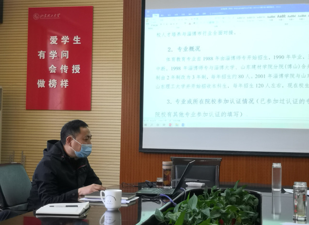 杨刚简要介绍了体育教育专业认证工作的开展情况,并逐一汇报认证申请书各部分撰写内容,与会教师讨论交流,发表意见与建议。