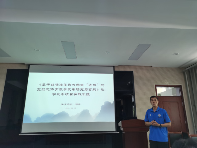 6月26日下午,我院于2号教学楼101报告厅组织召开省本科教学改革项目“非标准体形大学生体育教学改革研究与实践”实践成果总结与交流会,校教务处副处长胡付领,主任侯庆来,学院党总支书记、院长魏法汇,院长助理,教学科研办公室主任杨刚,项目主要负责教师及学生参加了本次交流会。