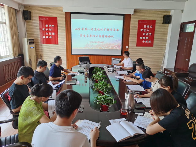 学院于2021年8月24日上午在2-111会议室召开山东省第八届高校体育教育专业学生基本功大赛筹备会议。学院党总支书记、院长魏法汇,学生管理办公室主任李昌朕,辅导教师参加会议,会议由院长助理、教学科研办公室主任杨刚主持。