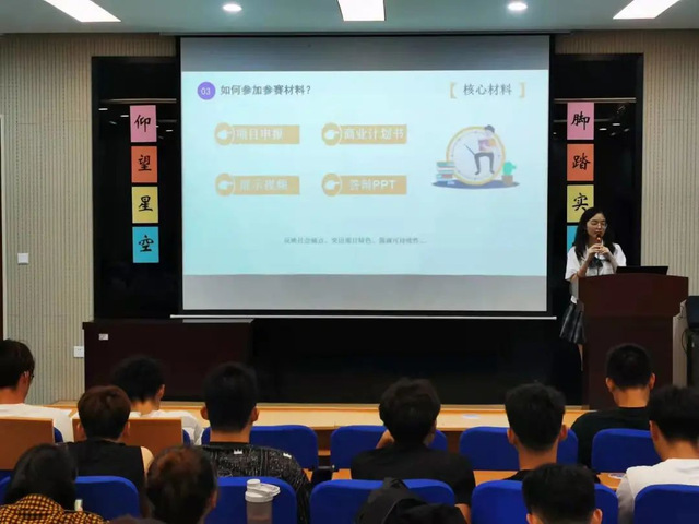 本次宣讲分为两部分,首先由孙宇腾同学对挑战杯竞赛的赛事章程、作品类别、申报要求及收获、大学生竞赛概况等方面进行详细的介绍。孙宇腾向同学们介绍了关于挑战杯赛事的相关知识与竞赛流程,并围绕“大学生挑战杯是什么”、“为什么要参加”、“参加后应该怎样去做”三个问题与同学们展开讨论。他表示参加“挑战杯”大赛,对于提高我们的创新创业能力、增强团队的合作意识,有着巨大的帮助。