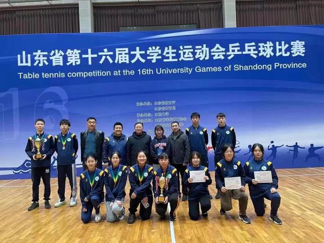山东省第十六届大学生运动会乒乓球比赛于12月5日结束,经过6天精彩比赛,我校乒乓球队获得丙组团体总分第一名,创造历史最好成绩!