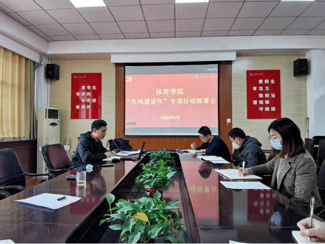 3月31日下午,体育以线上会议方式召开“作风建设年”专项行动部署会,学院班子成员、各党支部书记参加会议。