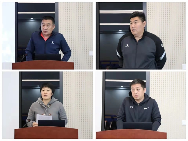 最后,魏法汇对各位教练员述职情况进行了点评,在肯定成绩的同时,针对各训练队存在的不足之处,明确提出要坚持问题导向,树立有解思维,精准破解难题,并就下一步如何抓好竞训工作提出四点要求:一是要加强团队建设,打造“训练育人”平台。教练员作为高校教师,首先要对自身的角色和定位有清晰的认识,要落实好立德树人根本任务,要加强团队建设,用强有力的思想引导和严明的纪律,认真做好队员的教育管理工作,切实增强团队凝聚力,力争把每支训练队都打造成为在学校中有影响力的育人品牌。二是要加强联系沟通,争取优质外部资源。要积极争取优秀生源,教练员要立足山东省“体育大省”和淄博市“体育强市”在青少年体育后备人才培养方面的优势,做好宣传,加强对外联络,争取更多优秀运动员报考我校。要积极吸引外部资源,深化与淄博市体校合作的力度,主动与有意向的合作单位对接,深化合作,利用外部资源进一步改善训练条件。三是要加强学习交流,不断提升业务水平。要树立做全能型教练员的思维和意识,积极争取外出学习进修机会,重视职业资格证书的考取,以教练员自身的水平提升确保训练队整体实力的提升。四是要重视“阳光组”比赛,尽快实现新突破。阳光组成绩是衡量高水平大学建设的重要指标,也是目前最容易实现突破的项目,教练员要重视的阳光组运动员的选材和训练工作,力争尽早实现阳光组成绩的新突破。
