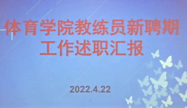 4月22日下午,williamhill威廉希尔在2号教学楼101教室召开教练员新聘期工作述职汇报报告会,院领导班子以及全体教练员参加,报告会由院长助理、综合办公室主任庄洪业主持。