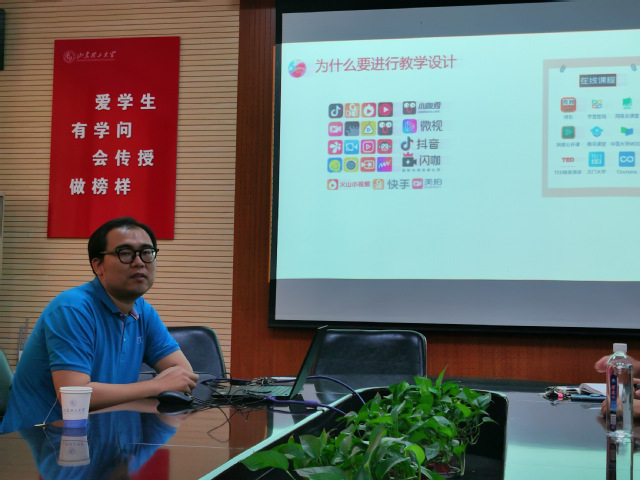周辉首先阐释为什么要进行教学设计、什么是教学设计,然后从学情分析、课程分析、教学过程设计、学生学习反馈、课程优势与特色、课程设计反思六个方面对如何进行教学设计进行了详细的讲解,内容详实,案例丰富。与会教师就教学设计过程中遇到的具体问题以及困惑与周辉老师进行了深入探讨与交流。
