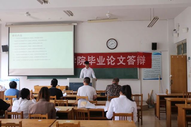 毕业论文答辩会包括论文陈述、评委老师提问、学生答辩三个环节。首先,各答辩组评委组长强调了答辩的注意事项,答辩期间,同学们通过PPT展示的方式依次汇报论文的选题来源、理论框架、研究思路和具体方法、研究结果、创新点分析、不足和未来展望等。随后,答辩老师认真听取学生汇报,从研究框架、写作内容、格式规范等方面对每位同学的论文答辩内容、撰写规范、整体质量进行了详细的提问和点评,并提出进一步完善要求。最后,同学们就评委老师提出的问题系统回答了自己的思考,并且表示将根据各位老师的意见认真思考,加以修改,进一步提高论文质量,凸显学科专业性。