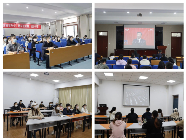 按照疫情防控要求,学院党总支认真组织校内值守的部分党员干部、辅导员和全体学生党员分别在2号教学楼101和119室集中收听收看开幕会直播。