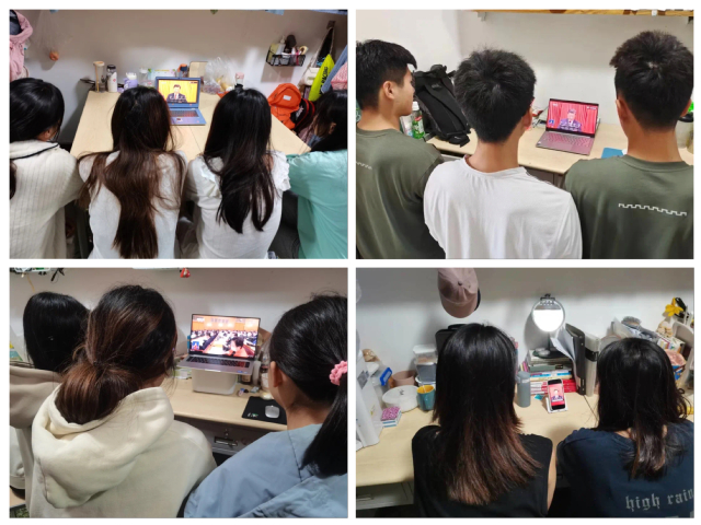 广大学生以宿舍为单位,通过电脑、手机等多种形式同步收看党的二十大开幕会实况直播,以饱满的精神状态认真聆听大会报告。