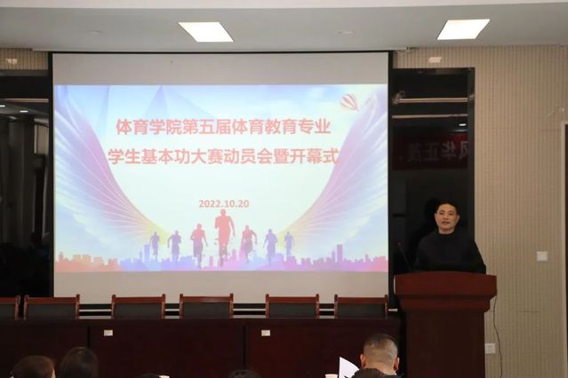会议伊始,杨刚首先介绍出席本次开幕式的领导和老师及体育教育专业学生基本功大赛历年来取得的优异成绩,并阐述此次开幕式的宗旨,旨在推动体育教育专业基本素质能力培养,支撑师范类专业认证工作都具有重要意义。